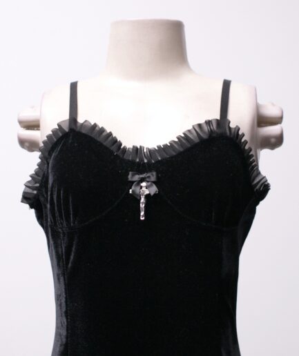 [P] vestido de veludo com cruz e barra de renda