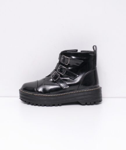 [34] Botas plataforma de verniz com fivelas e placas Reversa