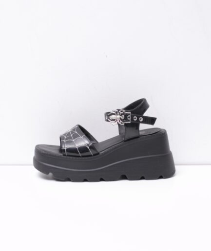 [38/39] Sandália plataforma com bordado de teia e pingente de aranha