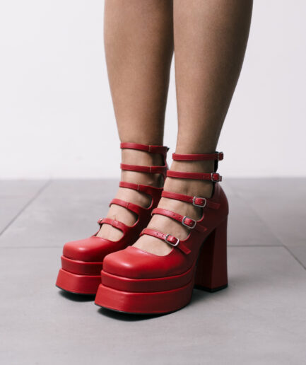 [34 ao 39] Sapatos com fivelas foscos vermelhos Caffeine