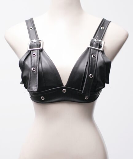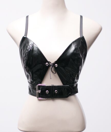 [P/M] Cropped/top de cirrê com ilhóses e fivelas