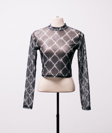 [P/M] Cropped manga longa de tule com estampa de arame farpado