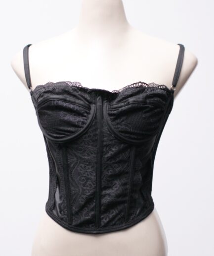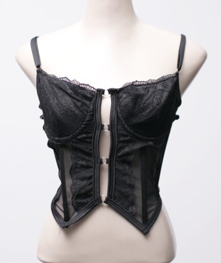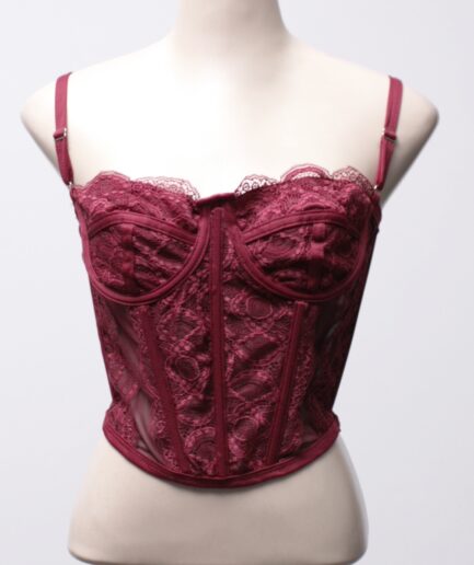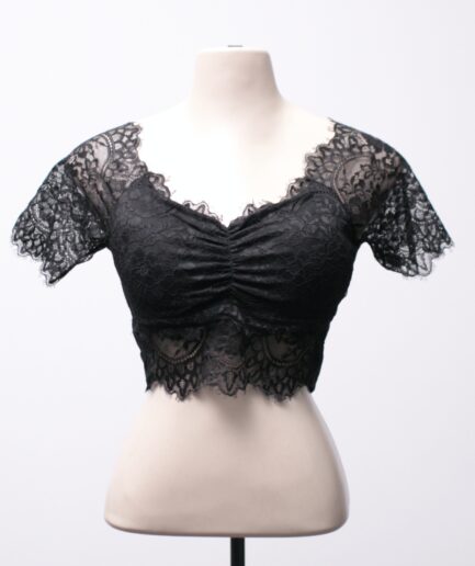[P/M] Cropped corpete de renda com detalhes de cetim sem transparência