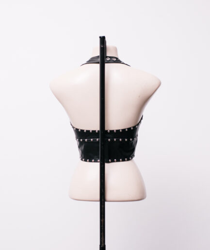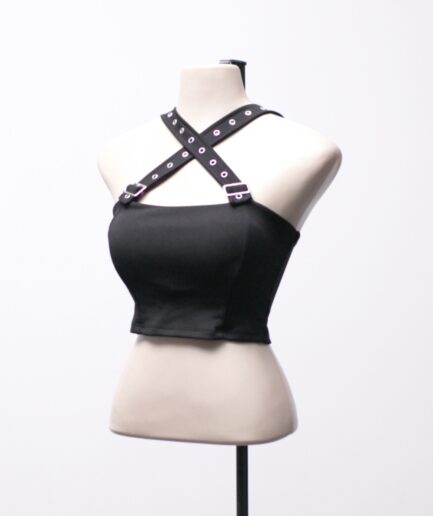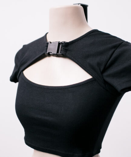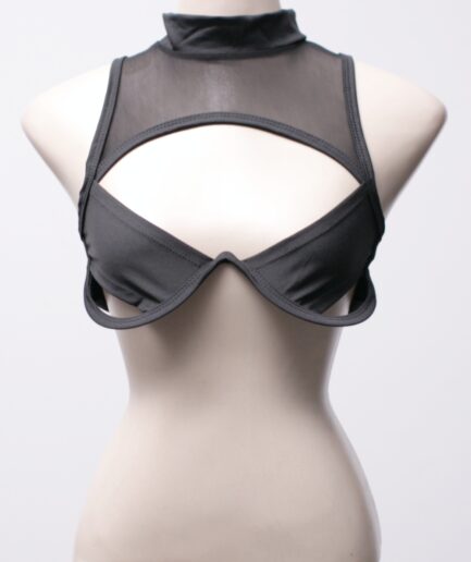 [P/M] Cropped gola alta com recortes e detalhes de tule