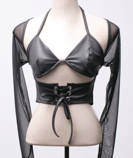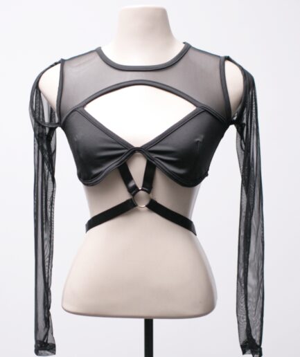 [P/M] Cropped manga longa de tule com recortes e tiras na cintura