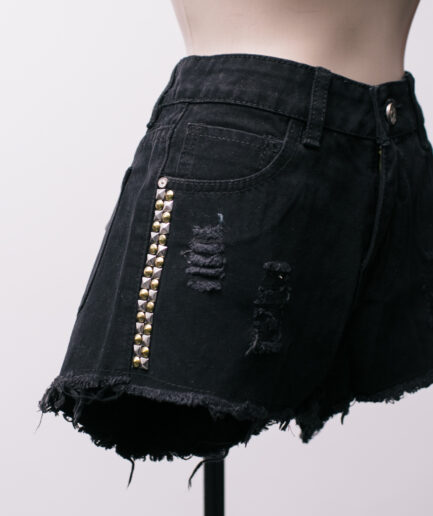 [PP/P] Shorts jeans preto com detalhes de rebites