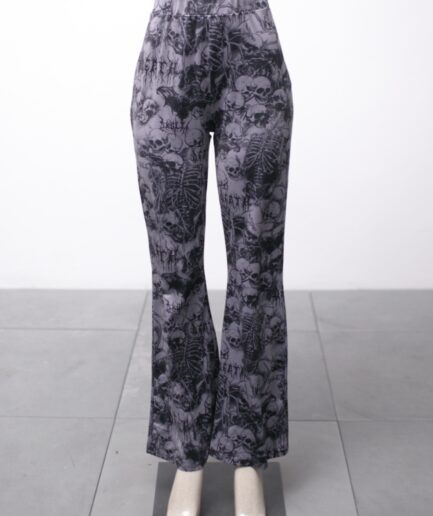 [M/G] Calça flare estampada com caveiras Romwe