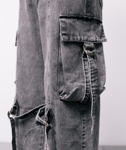 [P/M/G] Calça wide cargo grafite
