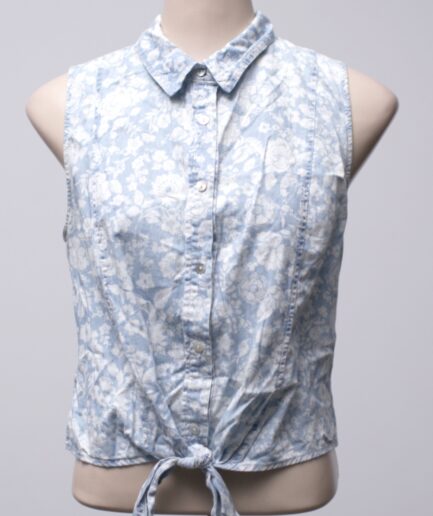[P/M] Camisa regata azul claro florida com botões e amarração Forever 21