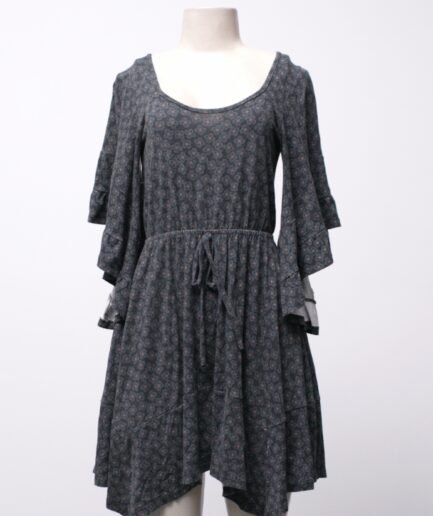 [PP/P] Vestido florido rodado com mangas flare Bluesteel