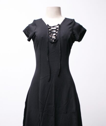 [P/M] Vestido rodado de malha com amarração nas costas