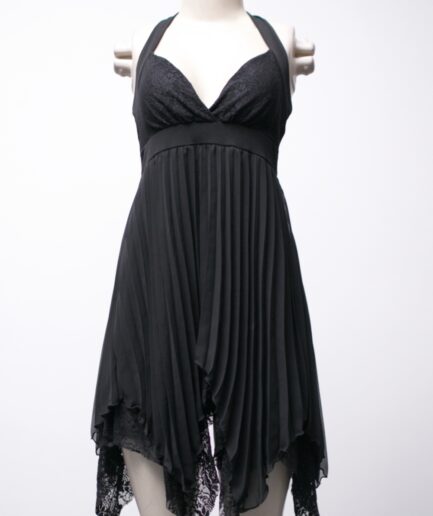 [P] Vestido plissado com pontas e detalhes de renda importado do Japão