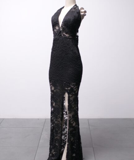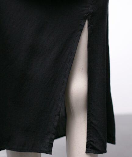 [P/M] Vestido midi de viscose com amarração nas costas e fenda