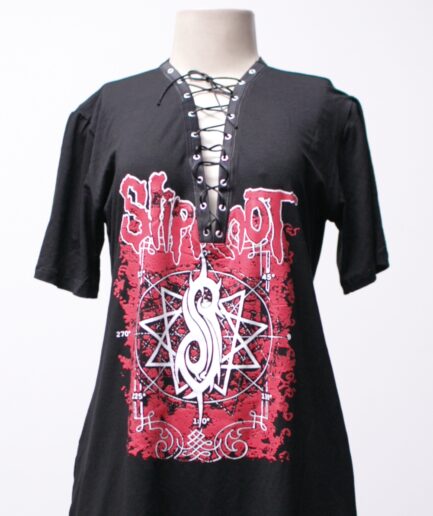 [P/M/G] Vestido de malha com amarração e estampa da banda “Slipknot”