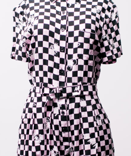 [P/M] Macaquinho quadriculado rosa com bolsos Bluesteel