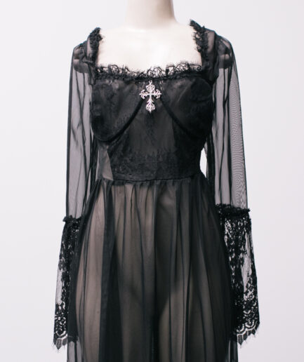 [P/M] Vestido longo de renda com manga flare Killstar