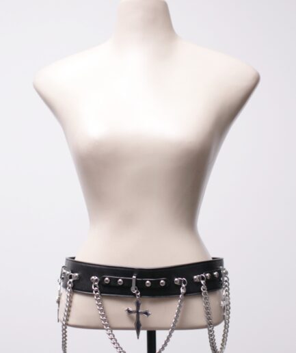 [P/M/G] Cinto de courino com correntes e crucifixos Killstar