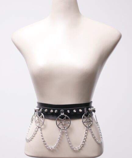 [P/M] Cinto de courino com pentagrama correntes e spikes Killstar