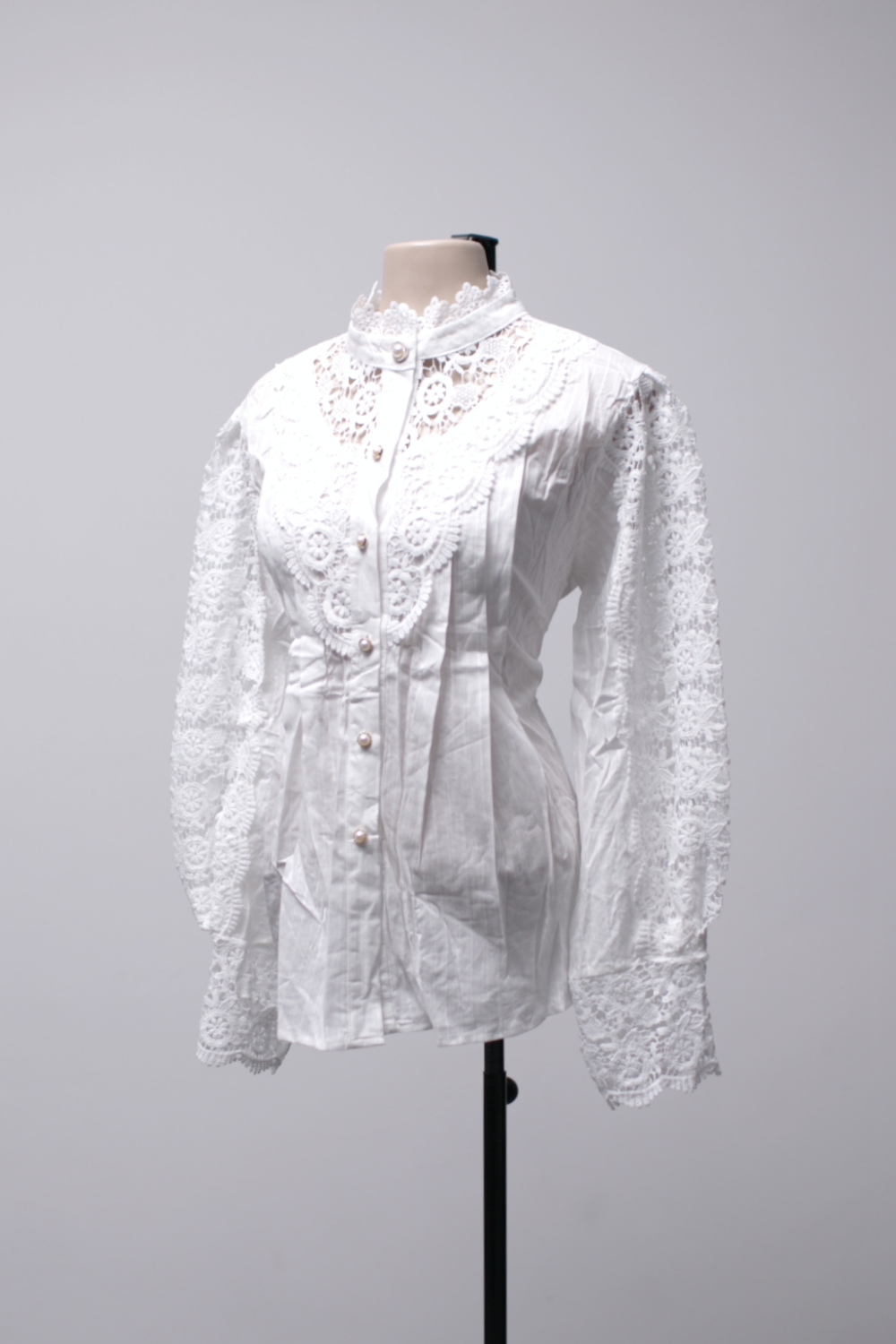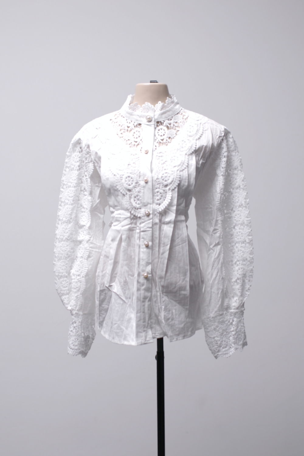 [G] Camisa manga longa branca com detalhes de renda