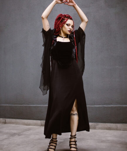 [G] Macacão de malha com decote cruzado Gotik Kvlt
