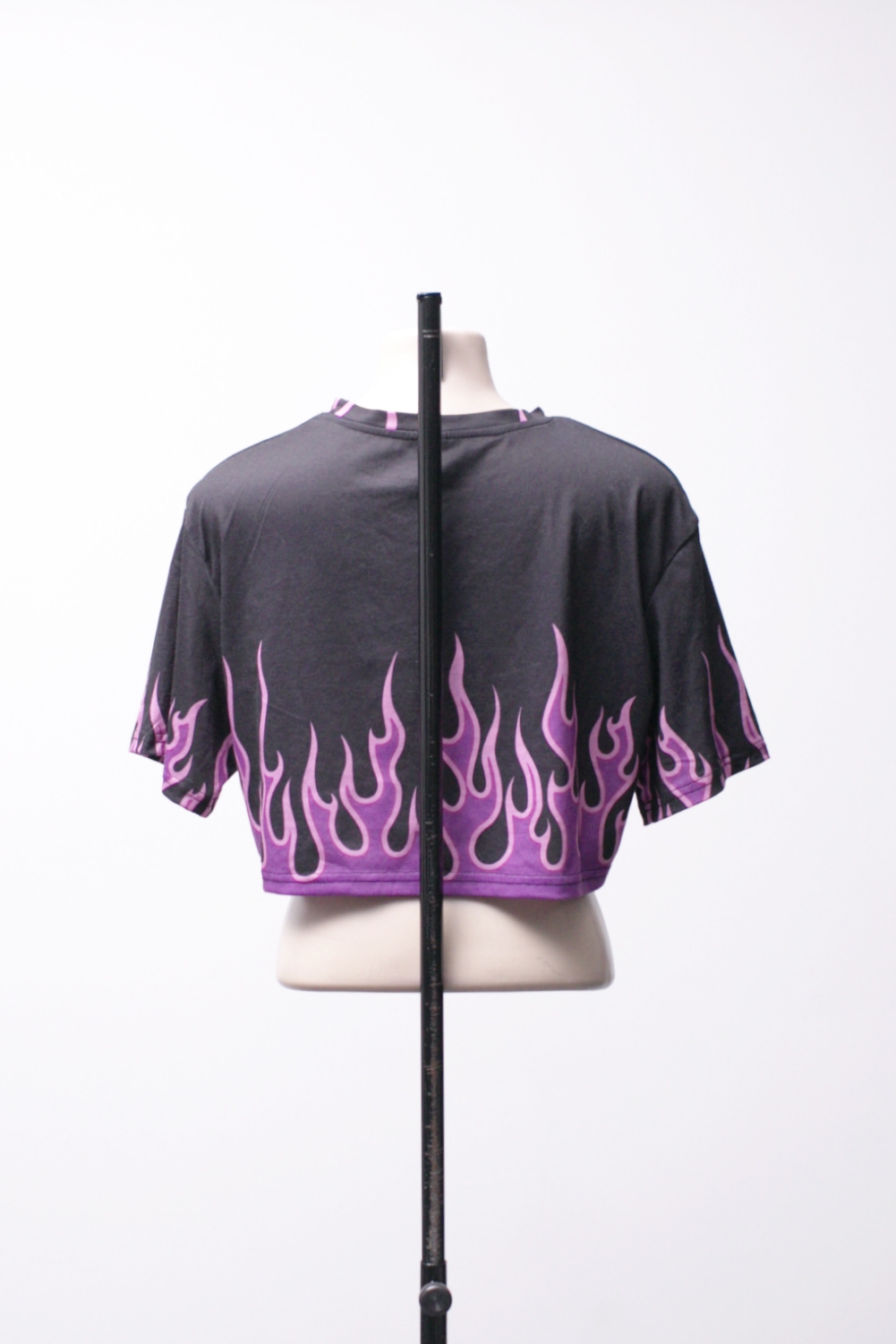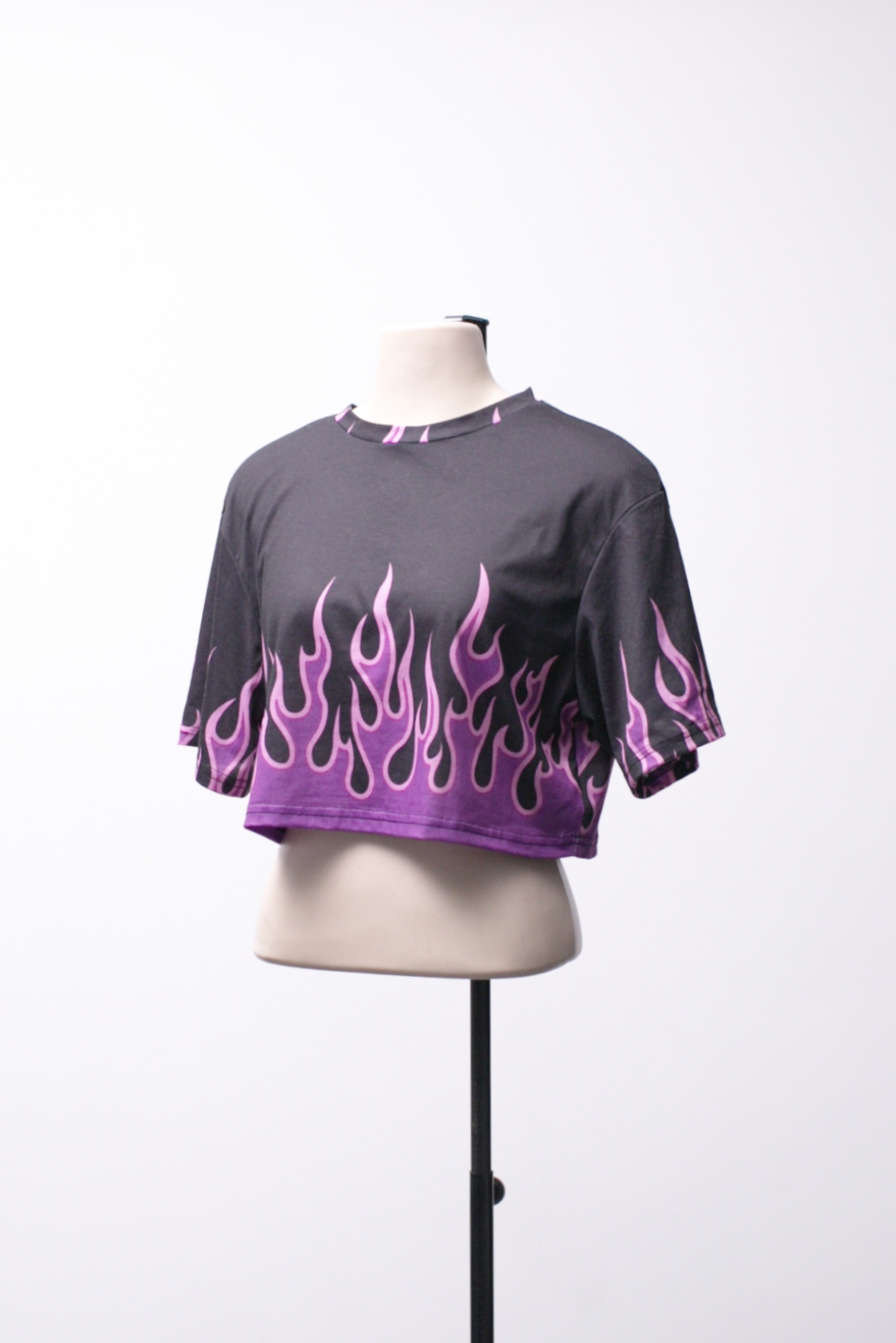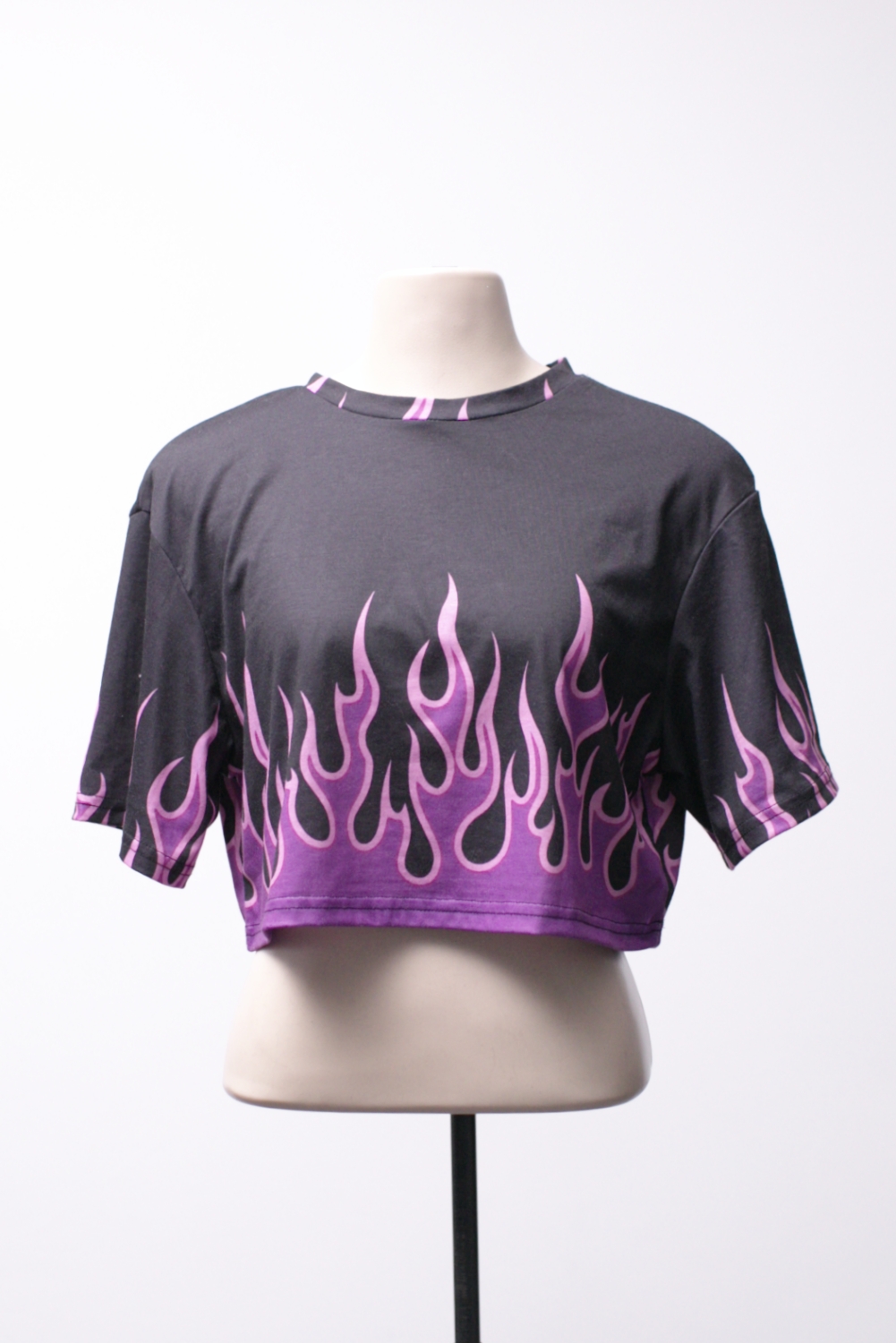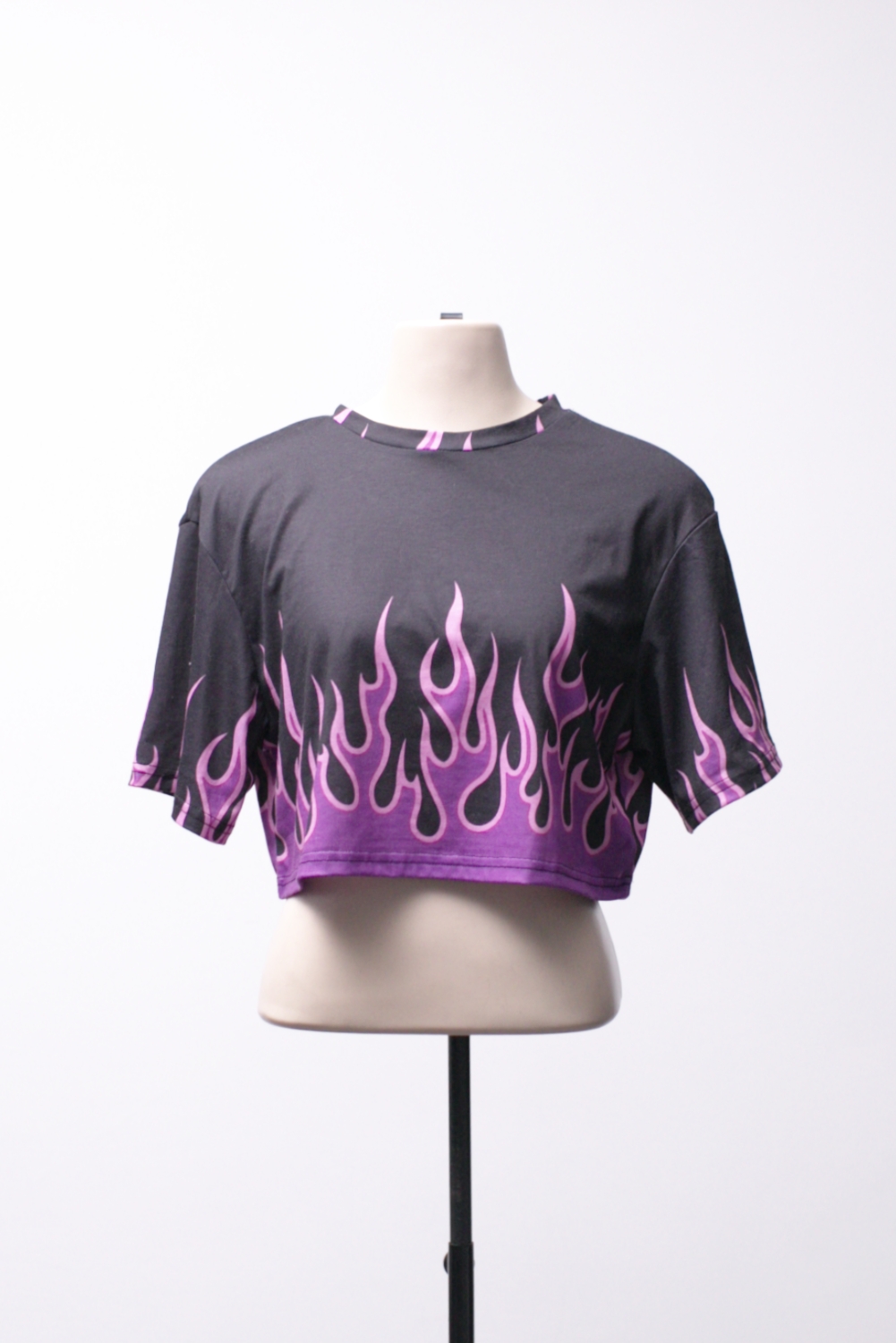 [M/G] Camiseta cropped com estampa de chamas roxa Shein