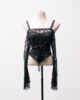 [M/G] Cropped manga flare de renda com amarração Romwe