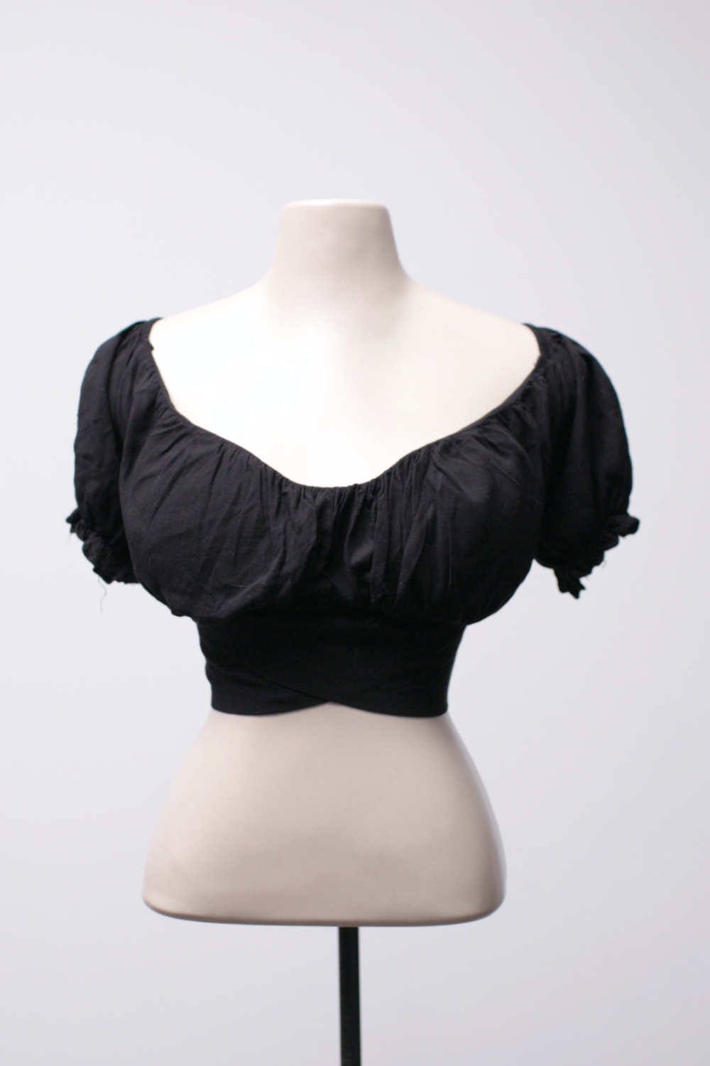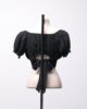 [P] Cropped de viscose com manguinhas bufantes e laço nas costas