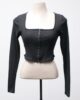 [P] Cropped manga longa canelado com fechamento de ganchinhos Gringa.com