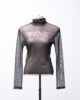 [P/M] Blusa manga longa e gola alta de tule estampado Clock House