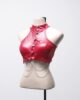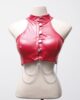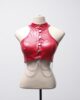 [P/M] Cropped em cirrê gola alta com botões e correntes vermelho