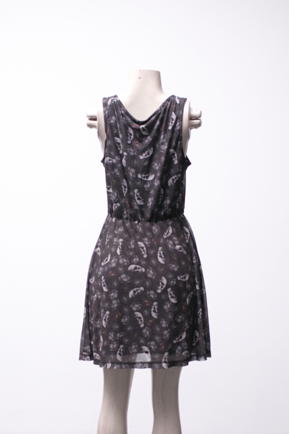[P/M] Vestido longo de viscose com pontas e estampa mística de sol e lua