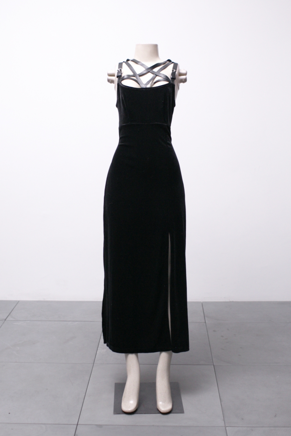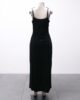 [P/M] Vestido longo de veludo com decote de pentagrama e fenda