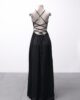 [P/M] Vestido longo de viscose texturizada com 2 fendas e amarração nas costas
