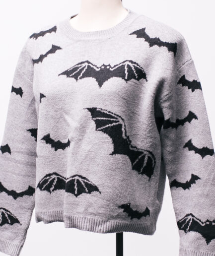 [M/G] Suéter de tricô cinza com morcegos Shein