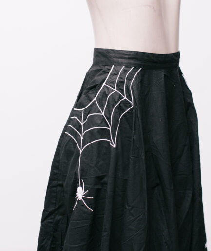 [GG] Saia godê midi com bordados de teias Hell Bunny