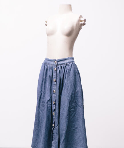 [M/G] Saia midi godê jeans com botões e bolsos